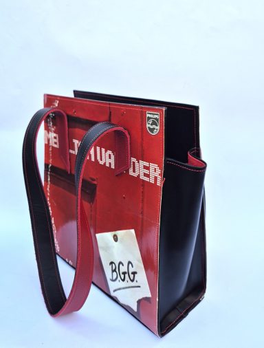 Croon delft geeft materialen een tweede leven. Oude spandoeken en andere restmaterialen worden niet weggegooid, maar omgezet in unieke, duurzame tassen. Zo krijgen opvallende reclameuitingen een nieuw doel, verminderen we afval en ontstaat er een product met een eigen verhaal.